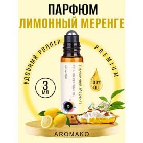 Найти - Масляные духи с роллером Лимонный меренге AROMAKO 3 мл, роллербол ароматическое масло лимонный, цитрусовый, ванильный