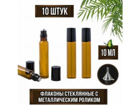 Набор флаконов роллеров 10 мл для эфирных масел и духов; из темного, тонкого стекла. Шарик из нержавеющей стали с чёрным основанием. 10 шт плюс 1 мини-воронка. 103553234199