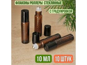 Набор флаконов роллеров 10 мл 10 шт, из тёмного толстого стекла для масел и духов, с градуировкой и металлическим роликом. 102830759408