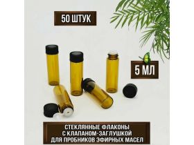 Мини флаконы стеклянные 5 мл для эфирных масел, из коричневого стекла, вставка с клапаном-заглушкой, 50 шт. 103137646085