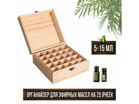 Органайзер коробка для хранения эфирных масел 25 ячеек для флаконов от 5 до 15 мл, деревянный ящик подставка для флаконов косметических, духов и лаков для ногтей. 103544798626