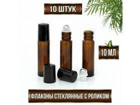 Набор флаконов роллеров 10 мл 10 шт, из тёмного толстого стекла для масел и духов, с металлическим роликом. 102830723594