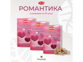 HEM Романтика - 3 упаковки по 10 шт - ароматические благовония, пуля, стелющийся дым, Romantic - ХЕМ 103155173630