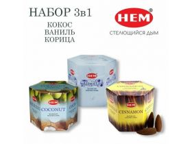 Набор HEM Кокос Ваниль Корица - 3 упаковки по 40 шт - ароматические благовония, пуля, стелющийся дым - ХЕМ 102228307539