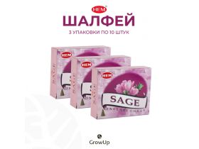 Набор HEM Шалфей - 3 упаковки по 10 шт - ароматические благовония, конусовидные, конусы с подставкой, Sage - ХЕМ 102225745756