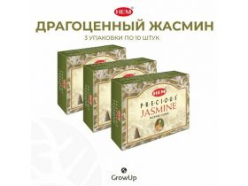 Набор HEM Драгоценный жасмин - 3 упаковки по 10 шт - ароматические благовония, конусовидные, конусы с подставкой, Precious Jasmine - ХЕМ 101925698161