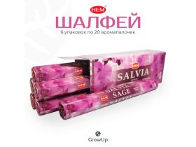 Набор HEM Шалфей - 6 упаковок по 20 шт - ароматические благовония, палочки, Sage - Hexa ХЕМ 101925849567