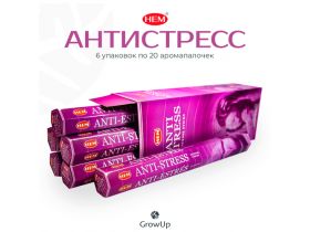 Набор HEM Антистресс - 6 упаковок по 20 шт - ароматические благовония, палочки, Antistress - аромат дымный, сладковатый, теплый - Hexa ХЕМ 101925849581