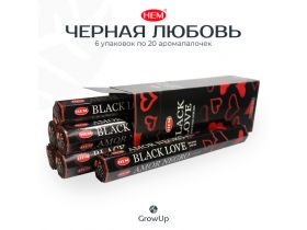 Набор HEM Черная любовь - 6 упаковок по 20 шт - ароматические благовония, палочки, Black Love - аромат восточный, специфический с нотками тропических цветов - Hexa ХЕМ 101925847429