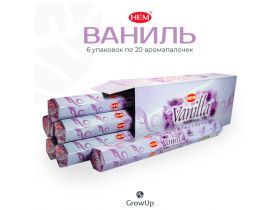 Набор HEM Ваниль - 6 упаковок по 20 шт - ароматические благовония, палочки, Vanilla - Hexa ХЕМ 101925847445