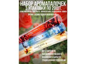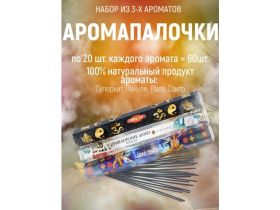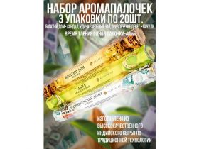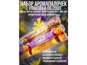 Благовония, Ароматические палочки, аромапалочкиИндокитай, набор 3 упак. по 20шт(СуперХит, Пачули, ПалоСанта) 103539714737