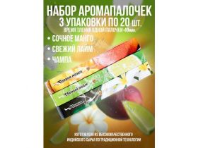 Благовония, Ароматические палочки, Набор аромапалочек Индокитай3 упак по 20шт: Свежий лайм, Чампа, Сочный манго 101779865845