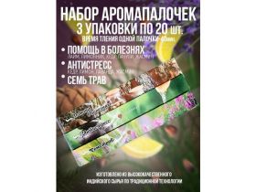 Благовония, Ароматические палочкиИндокитай(набор 60шт/3 аромата): Помощь в болезнях, Семь трав, Антистресс 101779887791