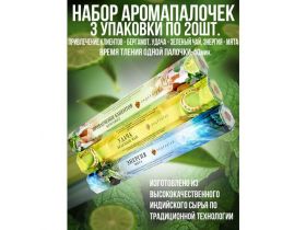 Благовония, Ароматические палочки, Набор аромапалочекИндокитай 3упак по 20шт: Мята, Бергамот, Зеленый чай 101779399345