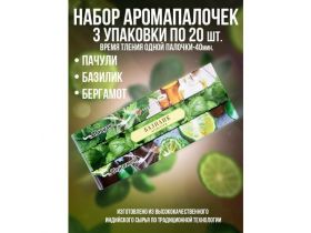 Благовония, Ароматические палочки,Индокитай(набор 60шт/3 аромата): Пачули, Базилик, Бергамот 101781214730