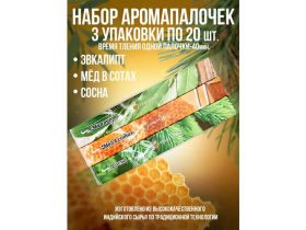 Благовония, Ароматические палочкиИндокитай(набор 60шт/3 аромата): Сосна, Эвкалипт, Мед в сотах 101779890094