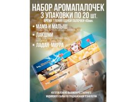 Благовония, Ароматические палочкиИндокитайнабор из 60шт: Ладан-Мирра, Мама и малыш, Лакшми 101781111305