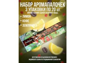 Благовония, Ароматические палочки, Индокитай, 60 штук в наборе, 3 аромата - Лимон, Кофе, Земляника 101781754783