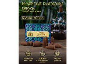 Благовония конусы стелющийся дым Orkay Белый Копал Copal White, 35 г, 10 ароматических конусов, Индия 102359777258