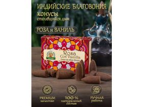 Благовония конусы стелющийся дым Orkay Роза и ваниль, Rose Vanilla, 35 г, 10 ароматических конусов, Индия 102363712674