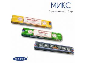 Набор Satya Микс - 3 упаковки по 15 гр - ароматические благовония, палочки, Mix aroma - Сатия, Сатья 102225745750