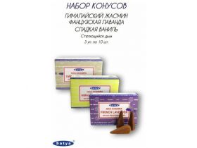 Набор Satya Французская Лаванда, Гималайский Жасмин, Сладкая Ваниль - 3 упаковки по 10 шт - ароматические благовония, пуля, стелющийся дым - Сатия, Сатья 101940549208