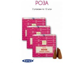 Набор Satya Роза - 3 упаковки по 12 шт - ароматические благовония, конусовидные, конусы с подставкой, Rose - Сатия, Сатья 101940549211