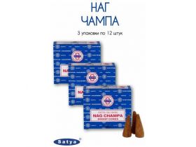 Набор Satya Наг Чампа - 3 упаковки по 12 шт - ароматические благовония, конусовидные, конусы с подставкой, Nag Champa - Сатия, Сатья 101925851747