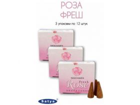 Набор Satya Роза фреш - 3 упаковки по 12 шт - ароматические благовония, конусовидные, конусы с подставкой, Rose Fresh - Сатия, Сатья 101925849577