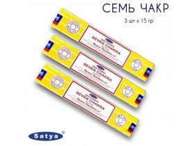 Набор Satya Семь Чакр - 3 упаковки по 15 гр - ароматические благовония, палочки, Seven Chakra - Сатия, Сатья 101925849584