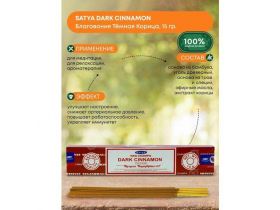 Благовония Satya Dark Cinnamon, Сатья Темная Корица, ароматические палочки, индийские, для дома, медитации, 15г 101622322542