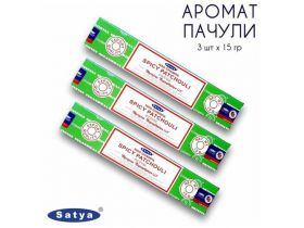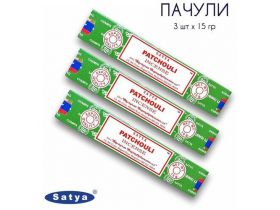Набор Satya Пачули - 3 упаковки по 15 гр - ароматические благовония, палочки, Patchouli - Сатия, Сатья 101925851754