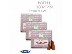 Набор Satya Волны позитива - 3 упаковки по 12 шт - ароматические благовония, конусовидные, конусы с подставкой, Positive Vibe - Сатия, Сатья 101925849594