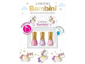 Подарочный набор детских лаков для ногтей на водной основе Bambini LIMONI с детским кольцом / Набор №18 Тон 10, 11, 12 101492056656