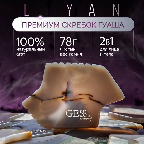 НАЙТИ ВЫГОДНЕЕ - Скребок гуаша для лица и тела GESS Liyan из натурального агата, подарочная упаковка