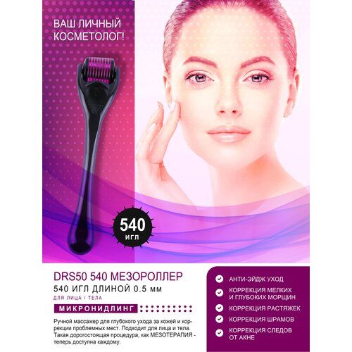 DRS50 540 Pins Stainless Steel Disk Needles Micro Needle DermaRoller Мезороллер 540 игл длиной 0.5 мм - ручной массажер для глубокого ухода за кожей и коррекции проблемных мест.