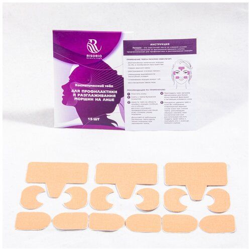 НАЙТИ ВЫГОДНЕЕ - Risorio Косметические тейпы Beauty Tape для профилактики и разглаживания морщин 15 шт. 1 шт. бежевый