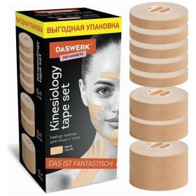Кинезио тейпы DASWERK подходят для тейпирования лица и тела. В спорте они используются для cнижения болевых ощущений при травмах, а в эстетической косметологии для моделирования овала лица, разглаживания возрастных и мимических морщин и т. д.