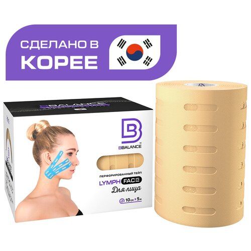 НАЙТИ ВЫГОДНЕЕ - BBalance LYMPH, перфорированный лимфодренажный тейп для лица. Уровень фиксации 2. Размер 10см*5м, цвет бежевый