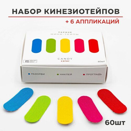 В набор входит 60 преднарезаных мини-тейпов, инструкция и схемы аппликаций, а также рекомендации по использованию тейпов.