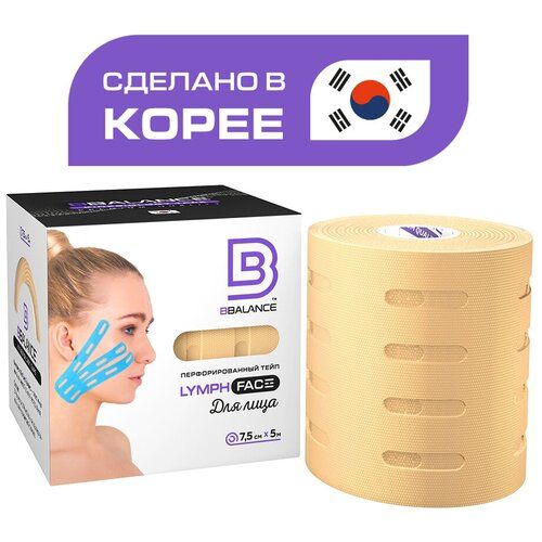 НАЙТИ ВЫГОДНЕЕ - BBalance LYMPH, перфорированный лимфодренажный тейп для лица. Уровень фиксации 2. Размер 7,5см*5м, цвет бежевый