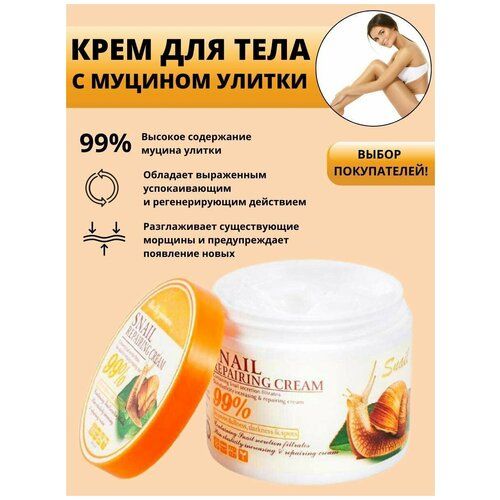 Крем с муцином улитки Snail Repairing cream 99% содержит авокадо масло, гликолевую кислоту, коллаген, хитозан, аллантоин, эластин и другие полезные элементы. Крем с муцином улитки великолепно борется с растяжками, шрамами, разглаживает морщины, подтягивает кожу, стимулирует клеточный рост, обеспечивает глубокое длительное увлажнение, защищает от преждевременного старения.