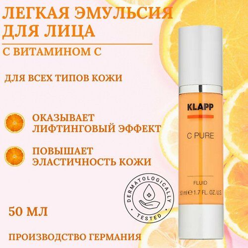 Klapp C PURE Fluid – это витаминная эмульсия, разработанная для ухода за всеми типами кожи. Объём флакона составляет 50 мл, что удобно как для домашнего, так и для профессионального использования. Данная эмульсия прекрасно подходит для ежедневного применения, насыщая вашу кожу необходимыми витаминами и влагой.
