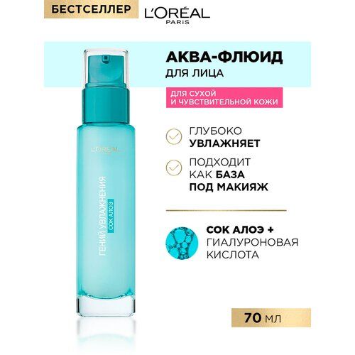 НАЙТИ ВЫГОДНЕЕ - L'Oreal Paris аква-флюид для лица Гений увлажнения для сухой и чувствительной кожи 70 мл 70 г 1 шт. 1 шт. флакон с дозатором