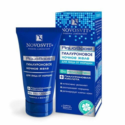 НАЙТИ ВЫГОДНЕЕ - Novosvit AquaBoost Гиалуроновое ночное желе для лица от морщин 50 мл 50 г 1 шт. тюбик