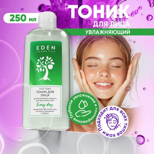 Тоник для лица EDEN увлажняющий, освежающий 250 мл - это эффективное средство для ухода за кожей лица, разработанное российским брендом EDEN.