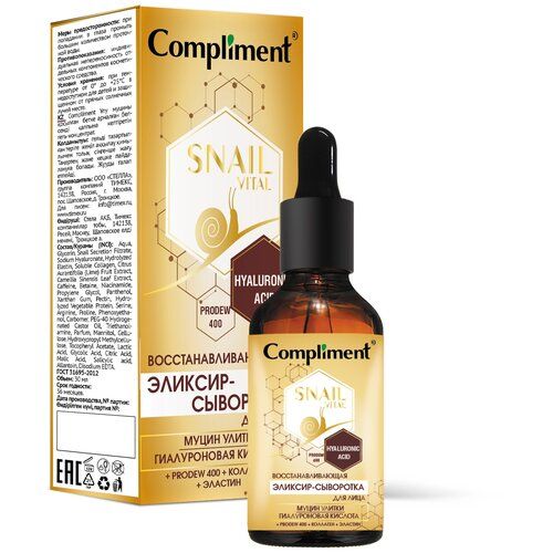 НАЙТИ ВЫГОДНЕЕ - Compliment Snail Vital Эликсир-Сыворотка для лица восстанавливающая 25 мл 100 г 1 шт. флакон