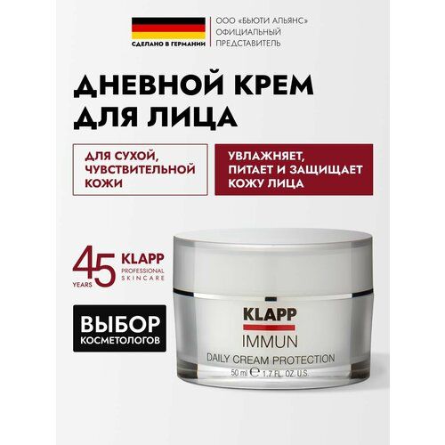 НАЙТИ ВЫГОДНЕЕ - Klapp крем Immun Daily Cream Protection для лица дневной 50 мл 0.2 г 1 шт. 1 шт. стеклянная банка