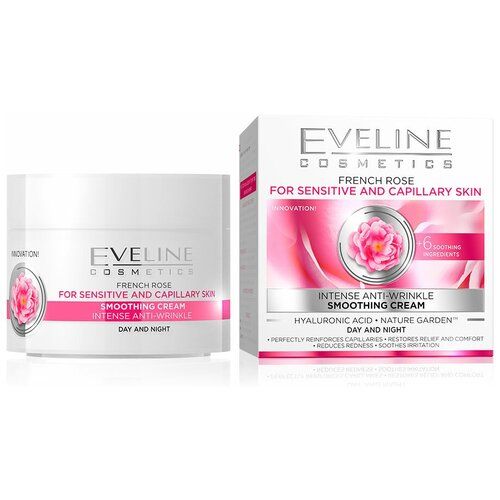 НАЙТИ ВЫГОДНЕЕ - Eveline Cosmetics 6 компонентов French Rose Омолаживающий крем для лица с экстрактом Французской Розы против морщин 50 мл 123 г 1 шт. 1 шт. пластиковая банка