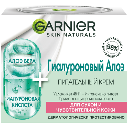 НАЙТИ ВЫГОДНЕЕ - GARNIER гиалуроновый Алоэ-крем питательный для сухой и чувствительной кожи лица 50 мл 50 г 1 шт. 1 шт. стеклянная банка